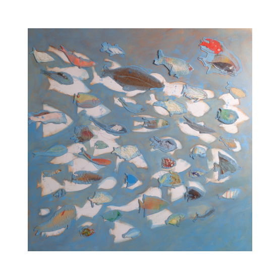 "Ichtus " série de 4 toiles, exposées en 2016, lors de la Biennale Art Sacré de Collioure, organisée par la Confrérie de la Sanch, font suite aux "Naufrages en Méditerranée."